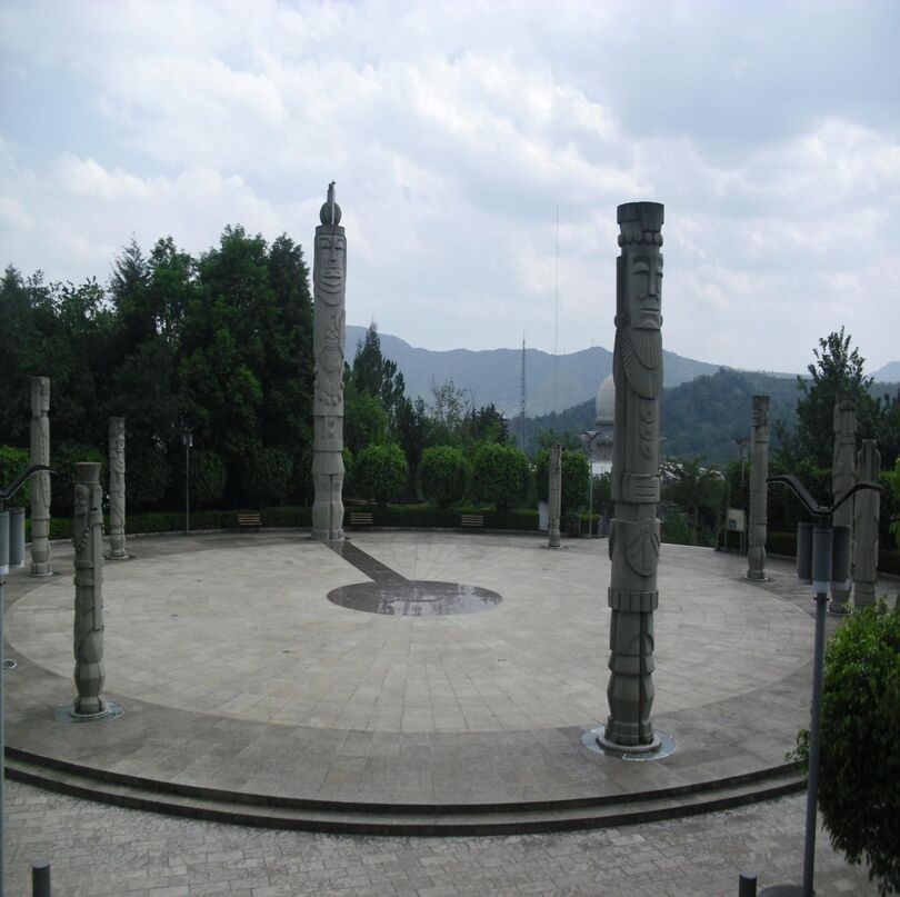 石阵广场,由十二棵巨大的石柱所组成,这十二根石柱就代表着的哈尼族的十二支系。每个支系的人数多少不同,与之相对应的柱子长短也就有所不同。在正南面最高的柱子上有一个小球,利用这个小球在地面的投影,可以准确的观测二十四节气。