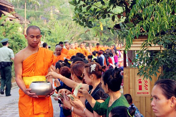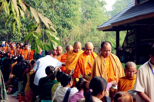 4月19 日是勐景来傣历1376新年泼水节,清晨天还未亮勐景来就人山人海,8:30活动准时开始,130位僧侣赤脚行走在勐景来的青砖路上托钵接受全打洛镇善男信女的傣历新年布施供养,演绎着至今已有2600多年历史的佛教古老的传统习俗,行善的信徒们都是打洛镇上的善男善女,来自勐景来周边的村民,还有来自五湖四海的远方游客,以及四面八方的媒体记者,他们都参加了此次活动,亲自体验到了南传上座部佛教浓烈的文化展现。