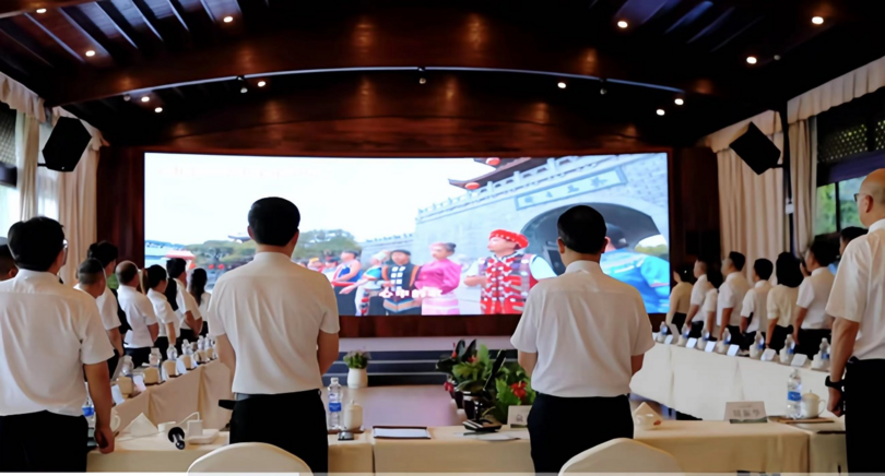 会议开始前,由湄公河旅游董事长兼总经理鲍建斌领唱,全体参会人员合唱《我和我的祖国》,通过嘹亮的歌声表达了对祖国的热爱和对企业的忠诚。随后,湄公河旅游财务管理部副总监白玲玲对上半年各公司的经营情况进行了简要汇报,并分析了各项经济指标和业绩数据。