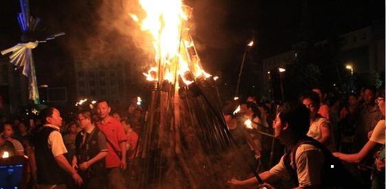 火把手点燃篝火